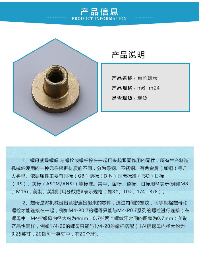 1.普通外T型台阶螺母——就是用于普通的螺钉和T型台阶螺母。