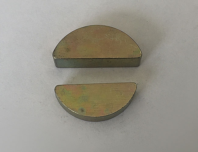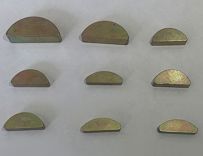 73.冲洋眼锁紧半圆键是键的一种,其上表面为一平面,下表面为半圆弧面,两侧面平行,俗称月牙键。它与平键联结方式基本相同,但较平键制造方便,拆装容易,尤其适用带锥度轴与轮毂联结。其缺点是削弱了轴的强度,一般只在受力较小的部位采用。