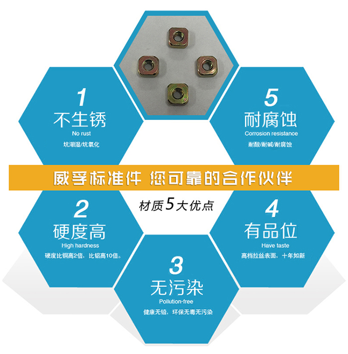 不同种类的螺母的作用不同,适合的环境也不相同。WF003方螺母也是一样,普通的螺母是六角形的,在使用一些扳手去紧固的时候能旋转的角度是比较小的,如果在一些有局限的空间使用草莓视频黄网站是很吃力的。这就用到WF003方螺母了,WF003方螺母的紧固旋转角度大,很容易就安装了。