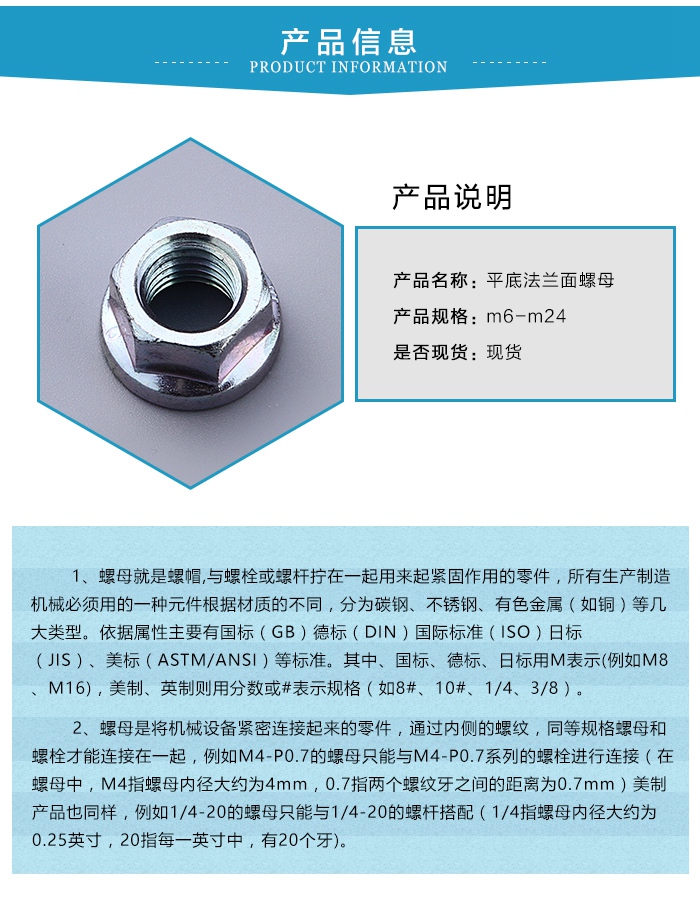选择法兰连接用螺母时,应同时考虑管道操作压力、操作温度、介质种类和垫片类型等因素。